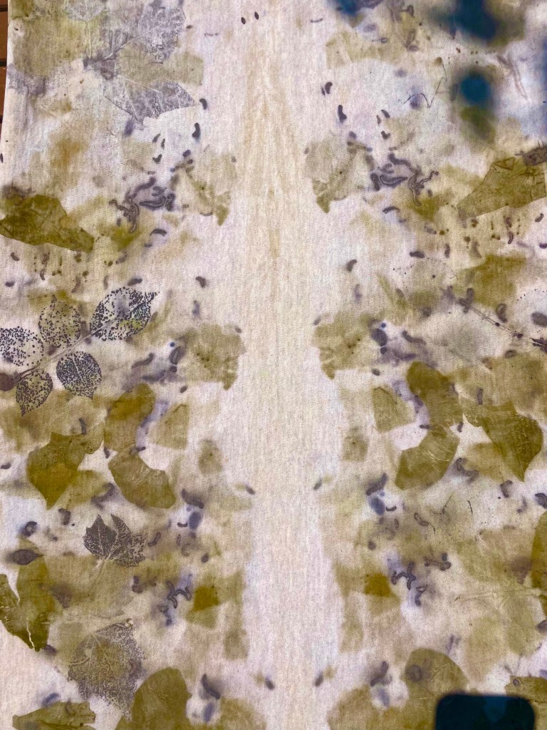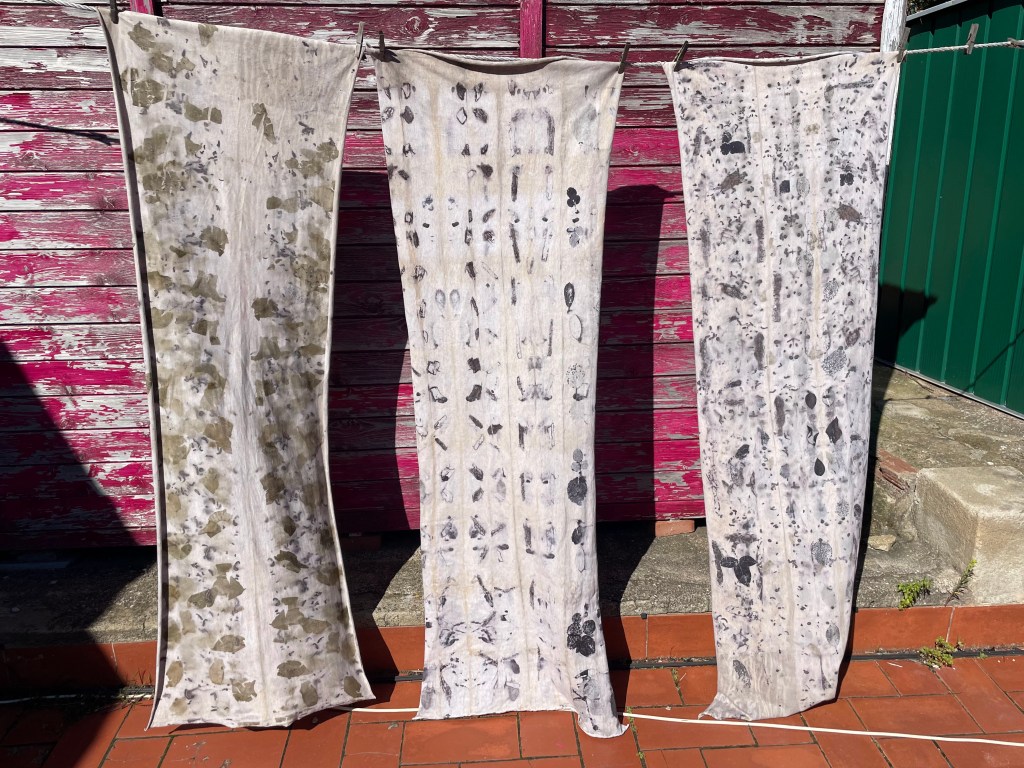 I’m lucky to live somewhere with a plethora of vegetation that produces good prints and so happy that my love of the humble onion extends to golden green hues on fabric.